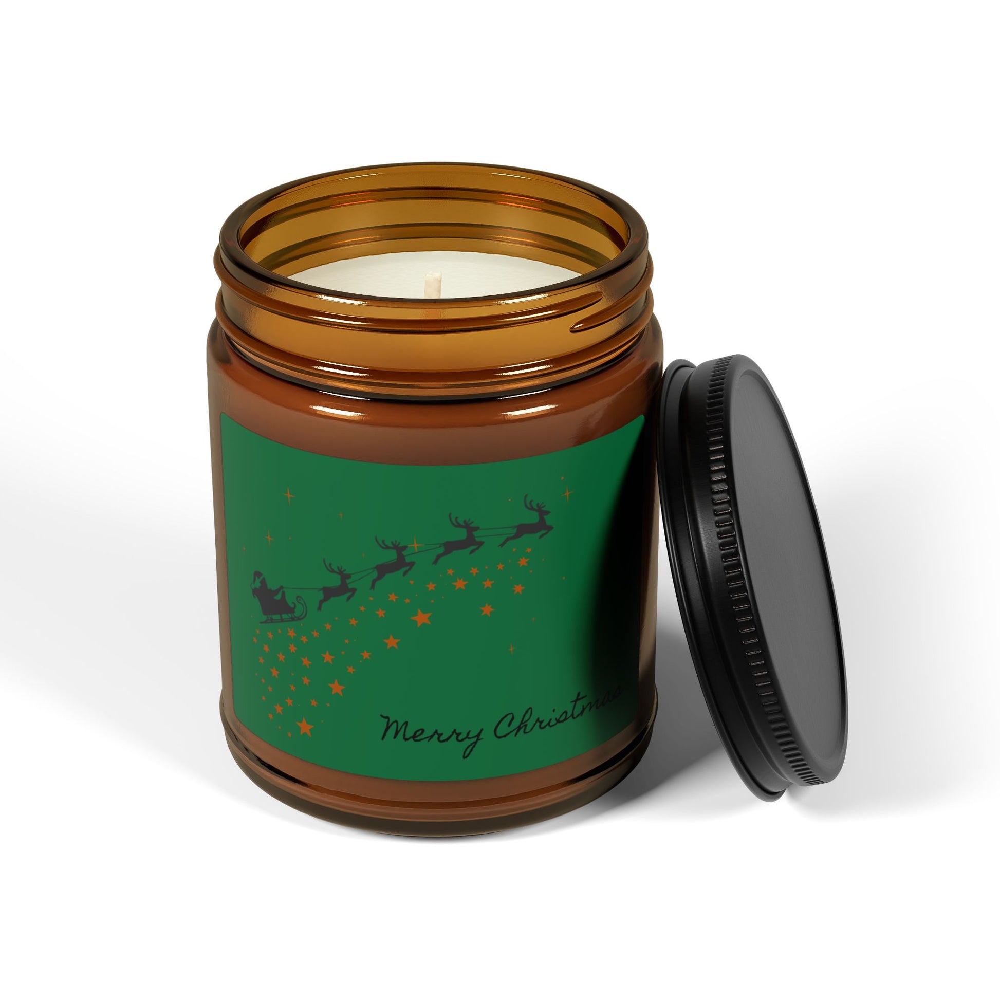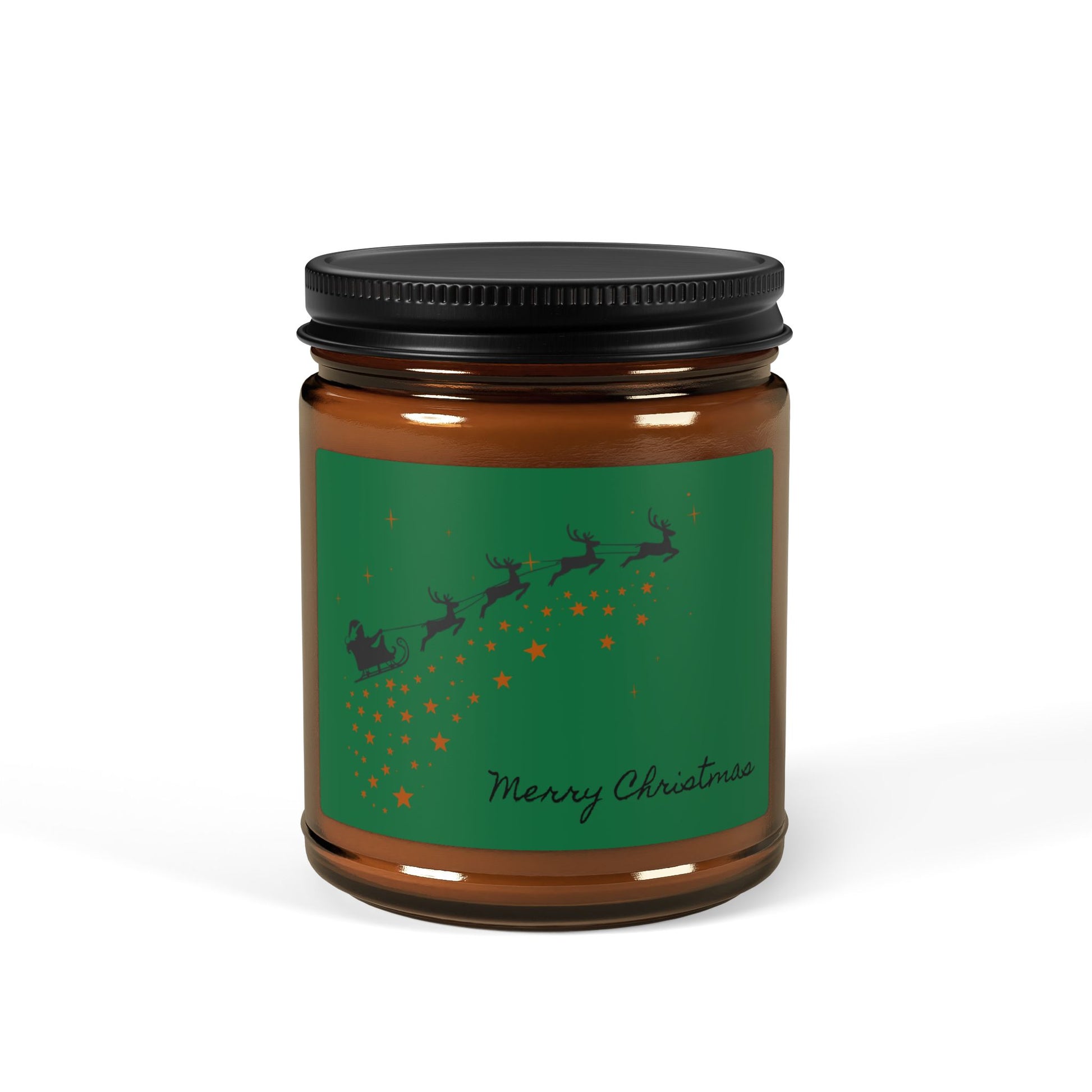 Create a cozy and festive atmosphere with this scented candle featuring a merry Christmas design with Santa and his reindeers. Perfect for adding warmth and holiday cheer to your home or as a thoughtful gift for Christmas enthusiasts.